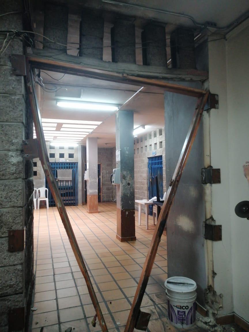 Proceso de arreglo de la estructura , desmonte y postura de marca con pasaddores empotrados a la pared